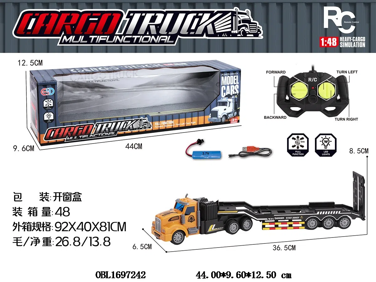 1: 48 four-way remote control trailer with lights and USB cable, body 3.7V battery with power included remote control 2 * AA without power included, 27 frequency