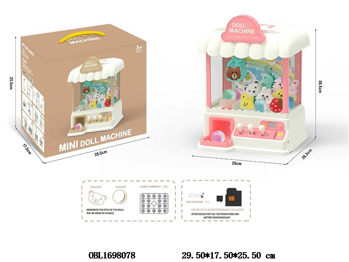 Capture doll machine with lighting and sound effects, USB cable, USB direct charging/4 * AA, no power included