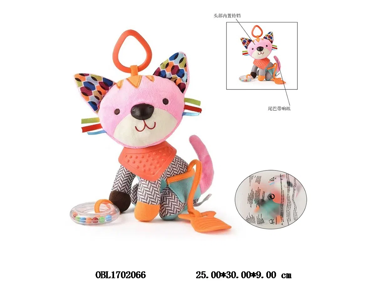 Home > Other Baby Toys > Baby plush wind chime teething pendant with bell tail and ringing paper zipper bag and hang card