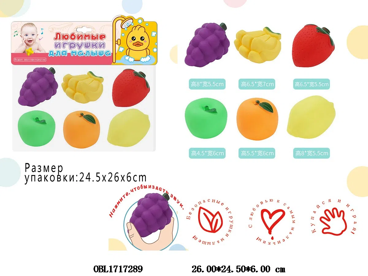 Home > Bath Toys > Russian version 6-pack vinyl fruit with BB whistle