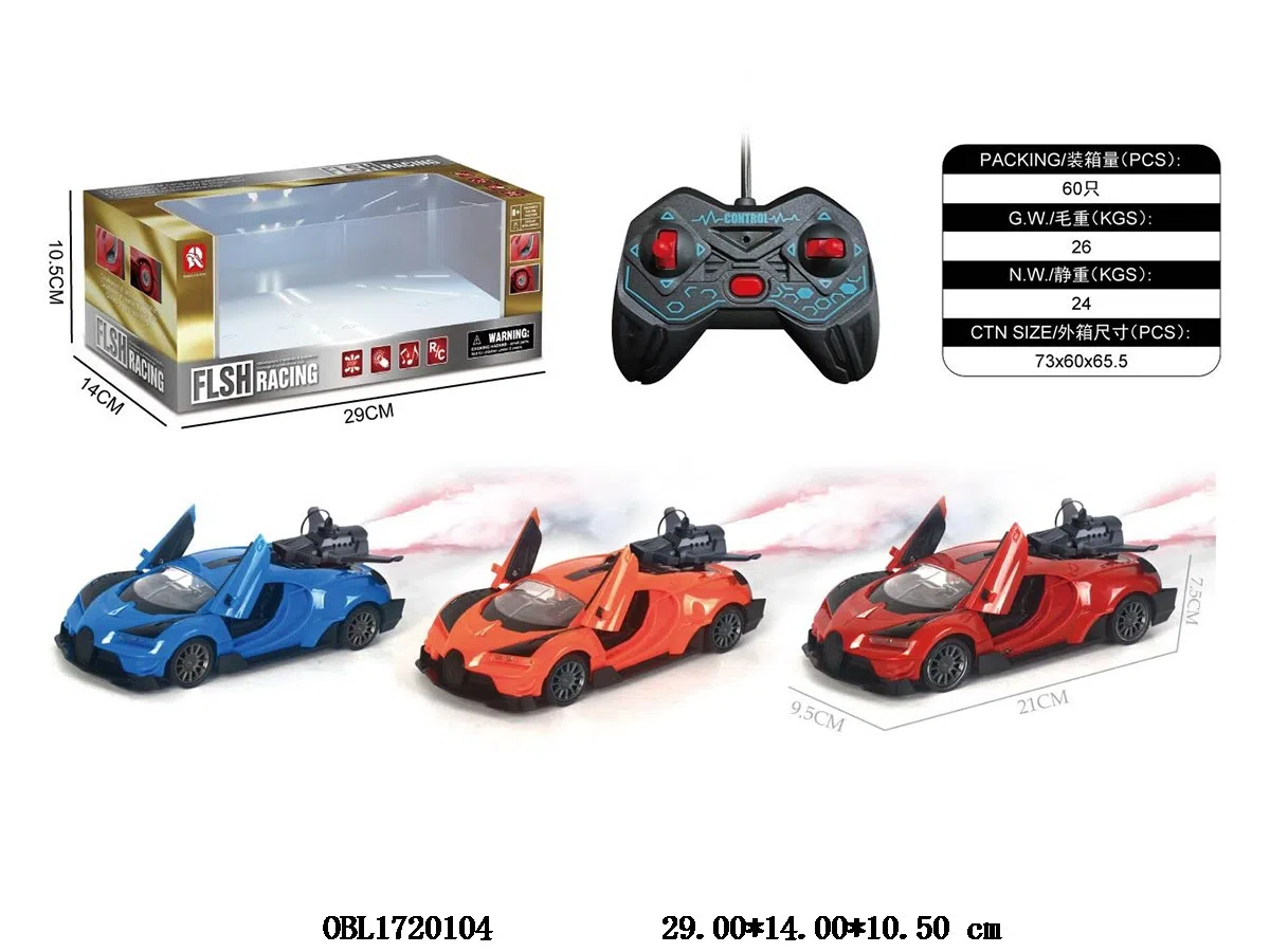 1: 24 remote control car with spray one button door opening body 3 * AA without electric remote control 2 * AA without electric control 27 frequency 3 color mixed