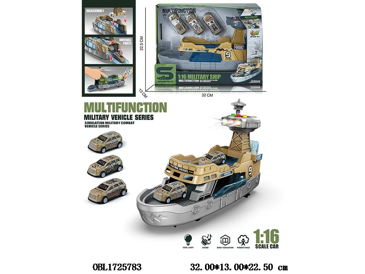 1: 16 Inertial Coastal Defense Ship with Lighting, Music, and 3 Sliding Cars 3 * AG13 Package Electric