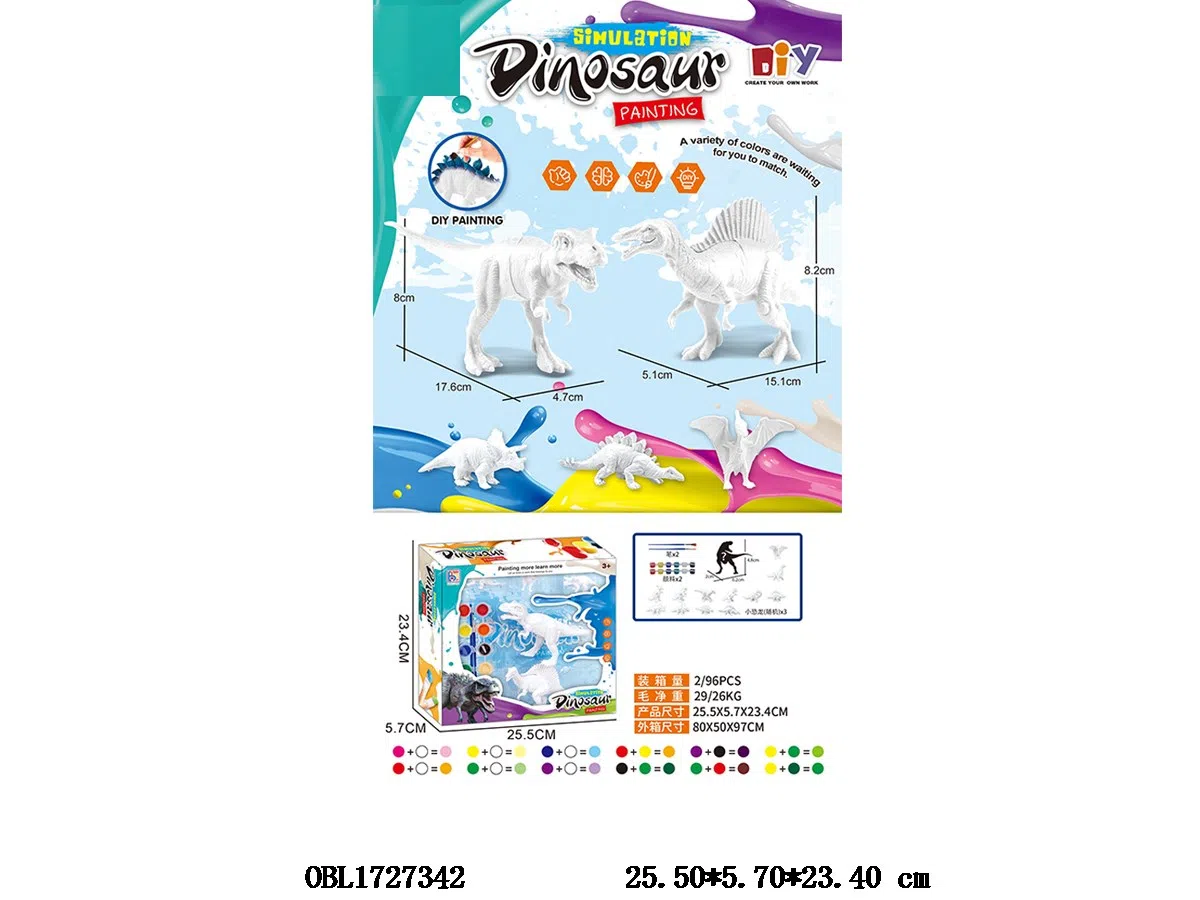 2-pack DIY painted graffiti dinosaur set with 3 random small dinosaurs