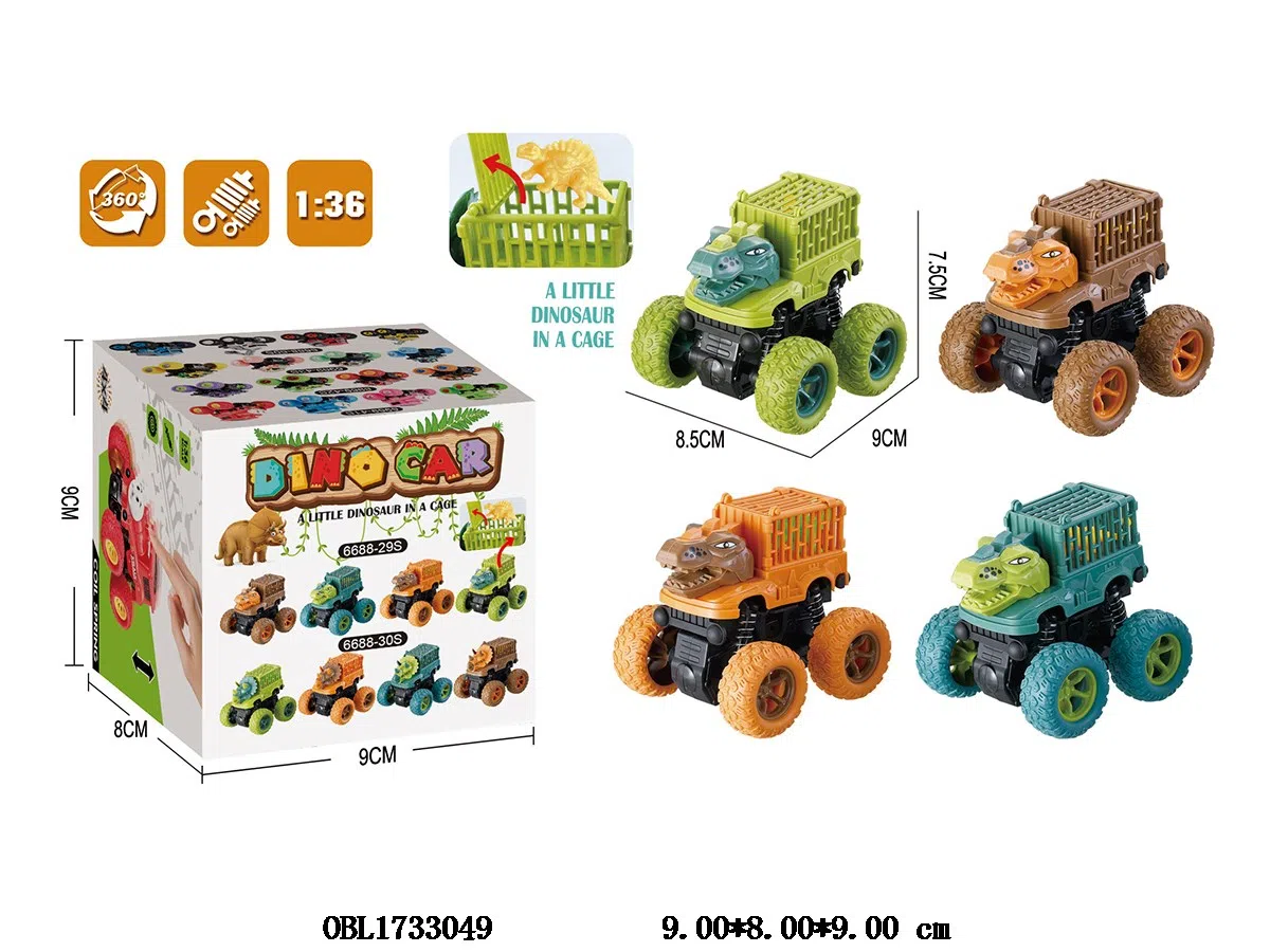 Home > F/P Car > Dual inertia stunt Tyrannosaurus rex car with 1 hard dinosaur 4-color mixed design