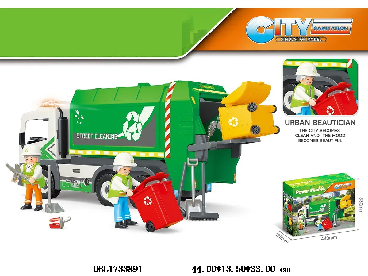 Sliding environmental sanitation transport vehicle with lights and music, equipped with 1 * male environmental sanitation personnel, 1 * female environmental sanitation personnel, 2 * AAA, not including electricity