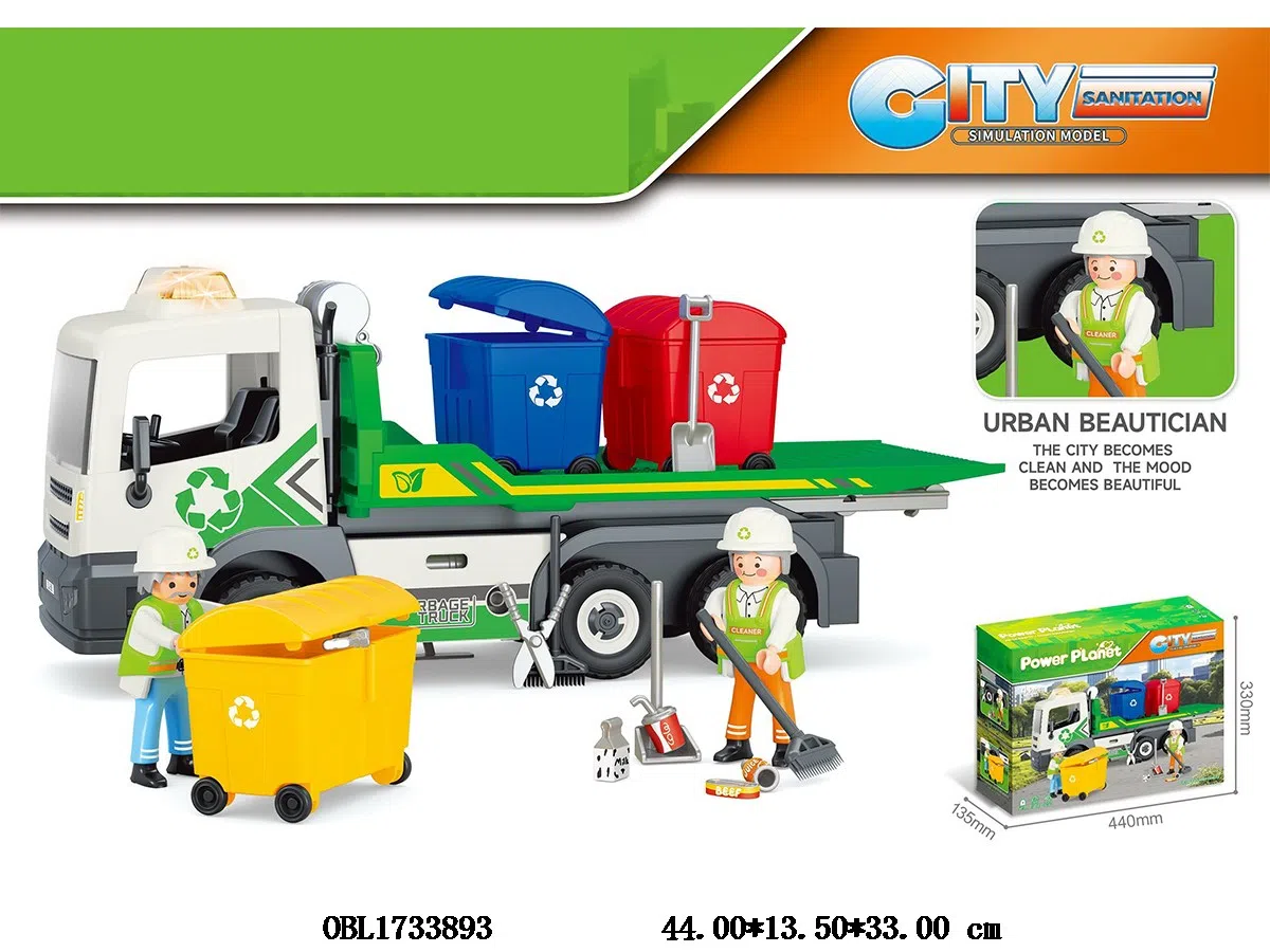 Sliding sanitation rescue vehicle with lights and music, equipped with 1 * male sanitation worker, 1 * female sanitation worker, 2 * AAA, not including electricity