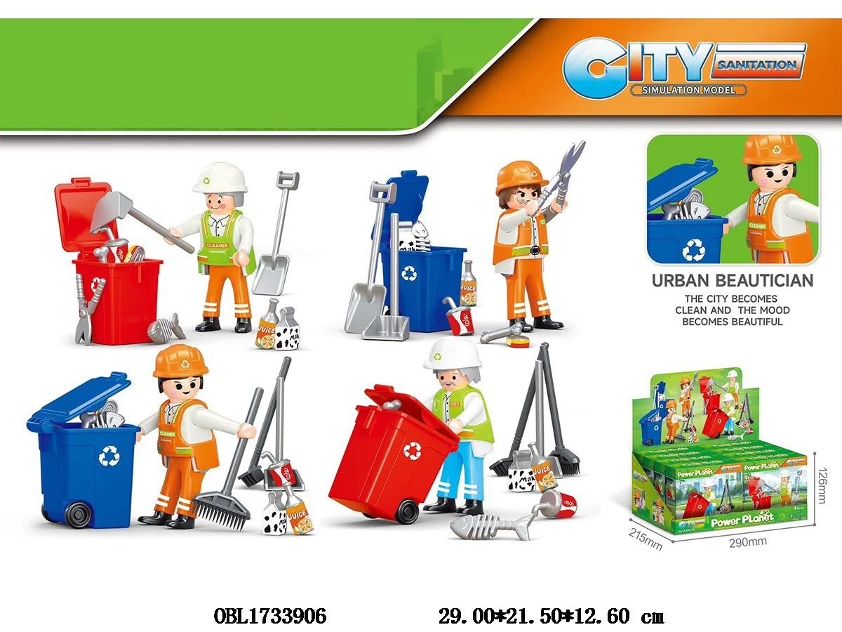 Sanitation trash can set with 1 * sanitation person, 8 boxes, and 1 display box