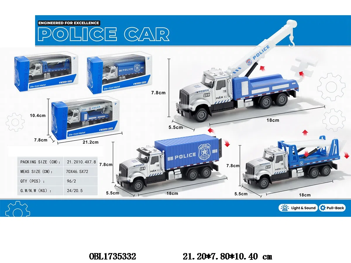 Alloy American style police car with lights, sound, 3 * AG13, electric package, 3 mixed models