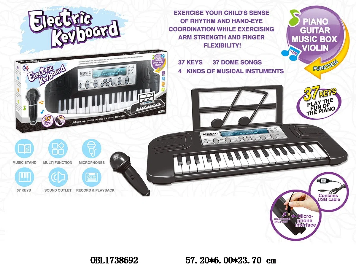 37 key multifunctional electronic keyboard with microphone, MP3 cable, USB power cable, 3 * AA, no power included