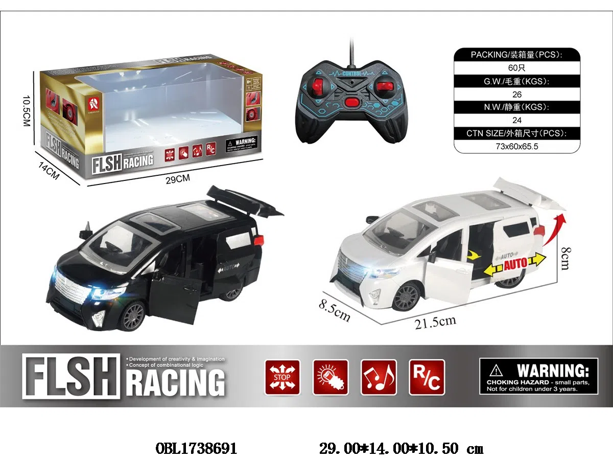 5-way remote control car with lights and sound, 1 key to open the door, 3 * AA body without power, remote control 2 * AA without power, 27 frequency, 2 color mixed