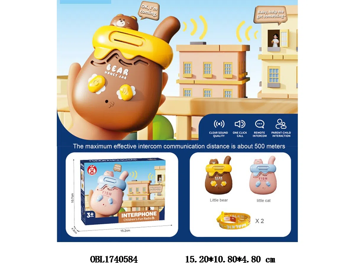 Little bear/kitten walkie talkie with lanyard instruction manual 3 * AAA, no electricity included