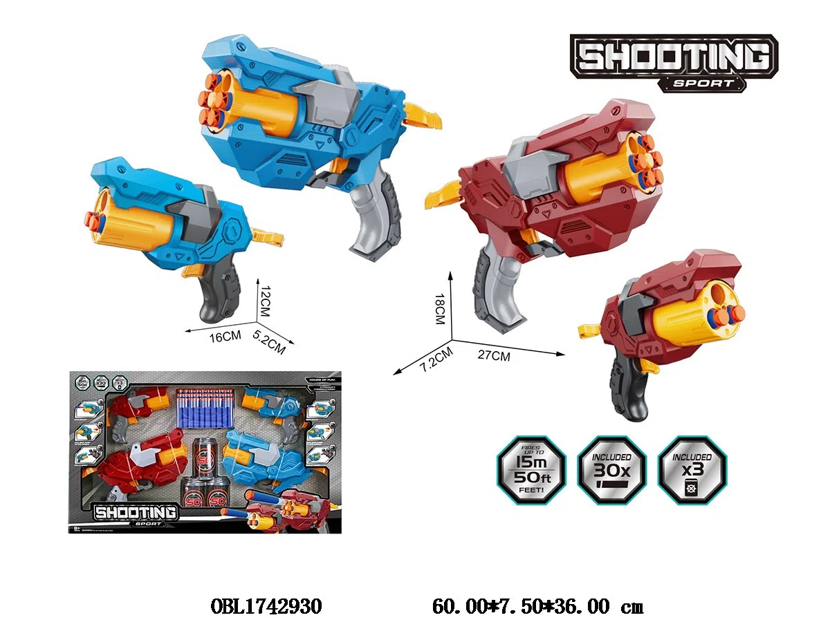 4-pack EVA soft bullet gun set with 2 colors mixed