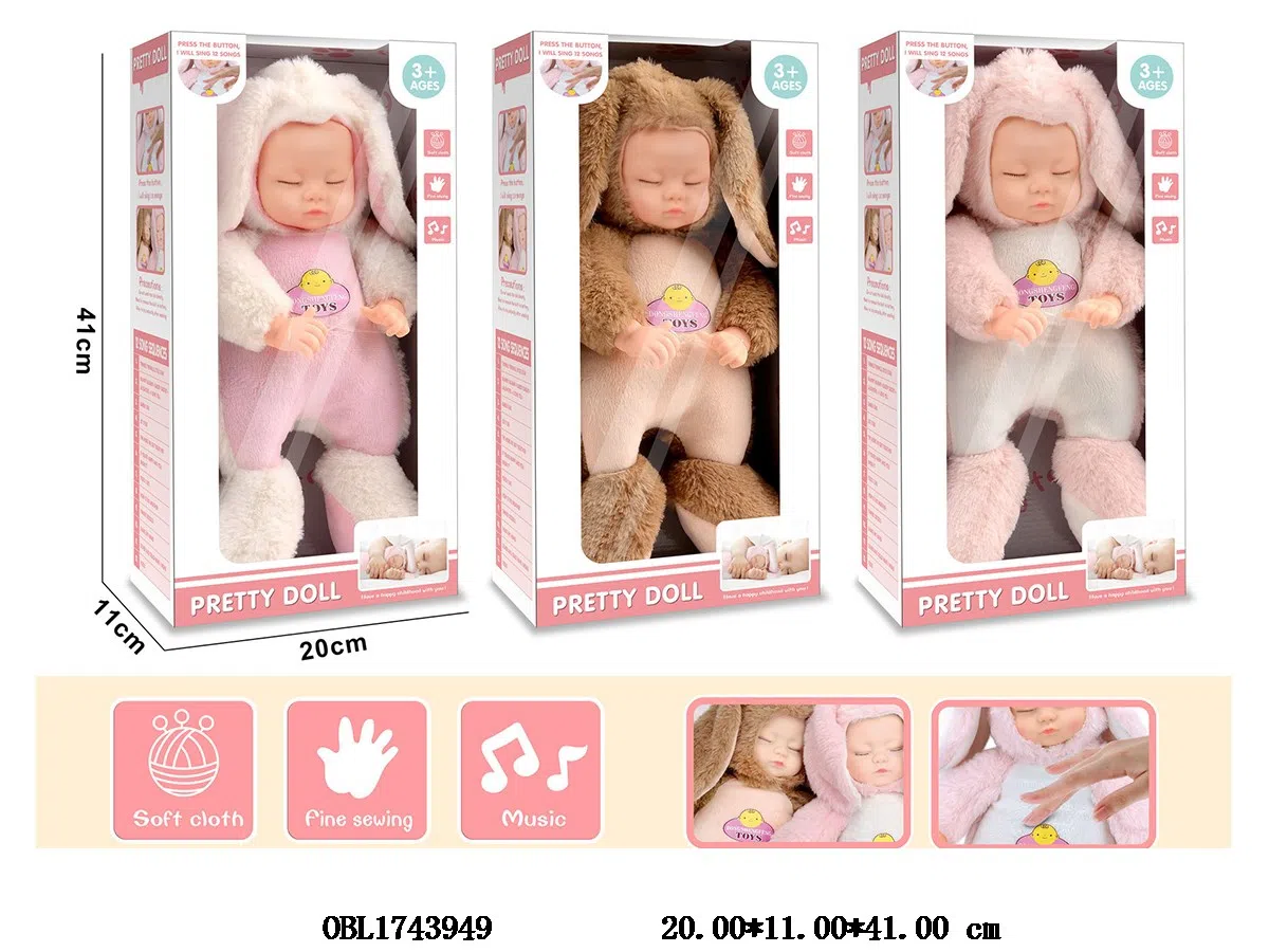 Home > Barbie with Music Box > 16 inch cotton body cute rabbit sleep doll with music box IC 12 songs package electric main body clothes 1 color 3 mixed