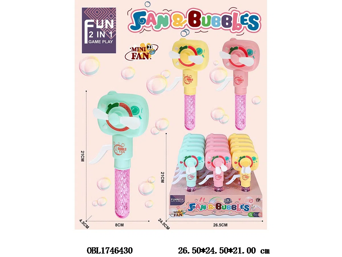 Hand pressed fan/bubble stick mixed in 3 colors, 15 pieces in 1 display box