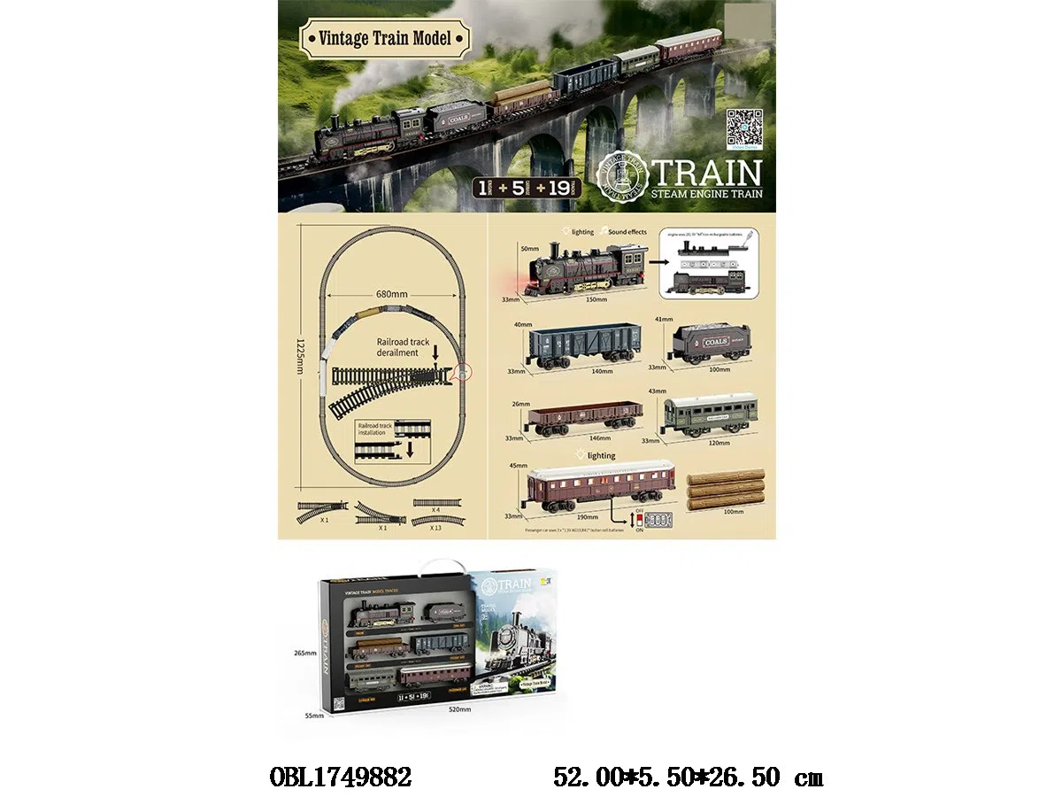 Electric rail train set with lighting and sound 2 * AA, no electricity included 1 carriage with lighting 3 * AG3/LR41, electricity included