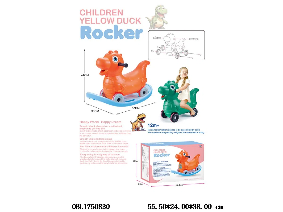 Dinosaur yo bike with rocking board mixed in 2 colors