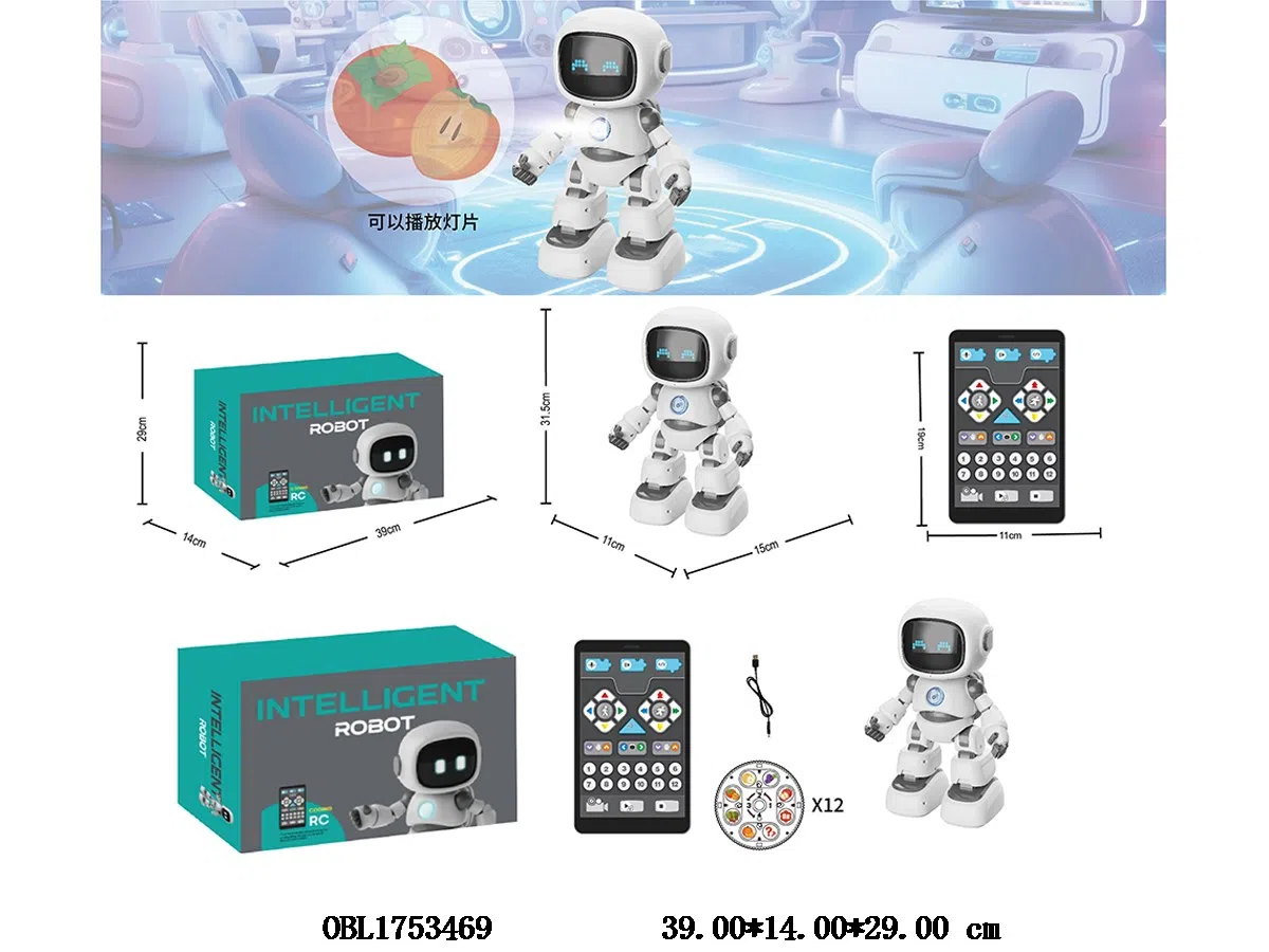 Home > R/C Robot > Remote control projection robot with lighting, music, dancing, programming, USB cable body, 3.7V lithium battery included remote control, 2 * AAA non included 2.4G
