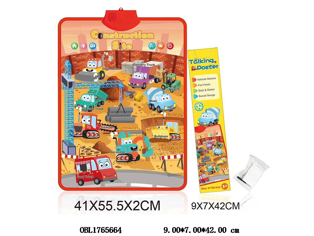 Home > Wall Chart Learning Device > Construction site map learning machine 3 * AAA, no electricity included, 1 hook, 1 screwdriver, circular double-sided tape