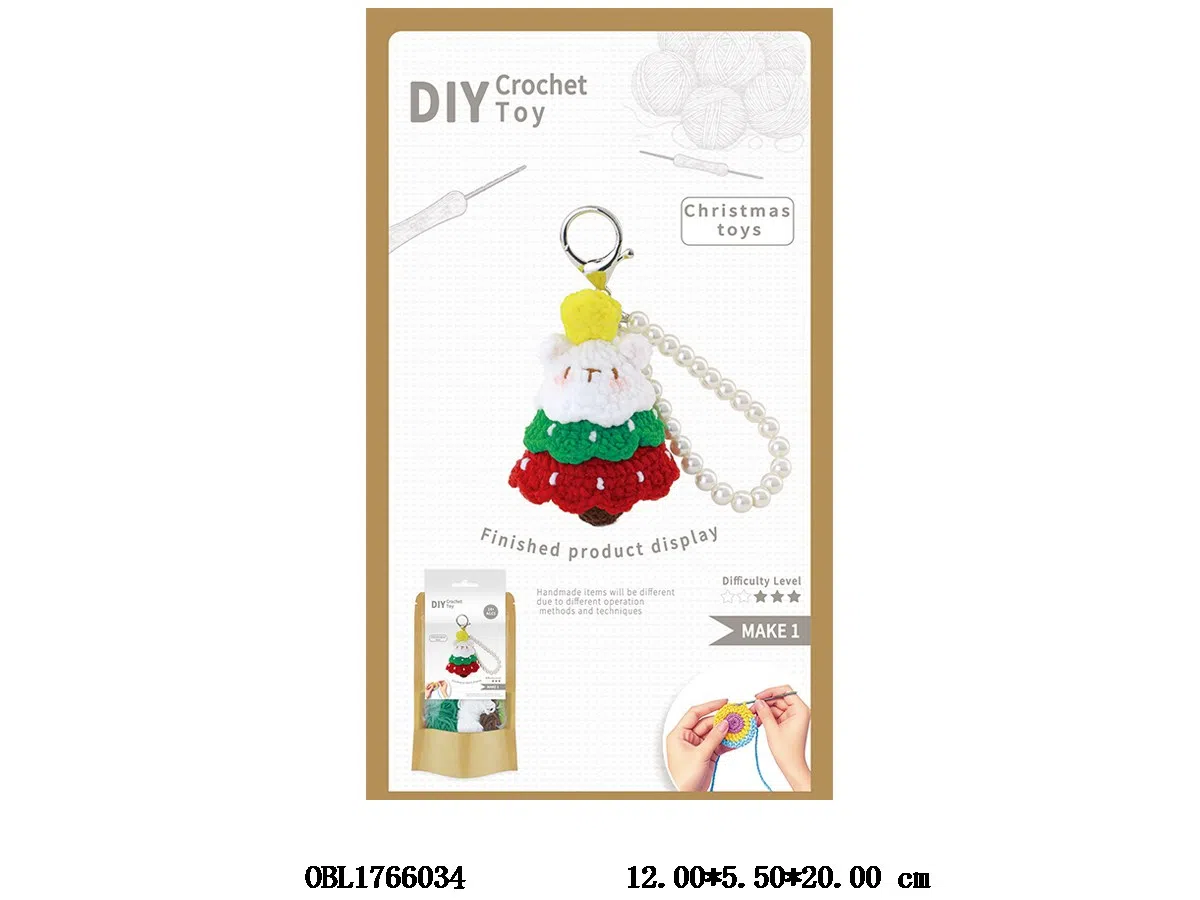 Craftsmanship DIY crochet Christmas tree pendant with cowhide bag containing production tools