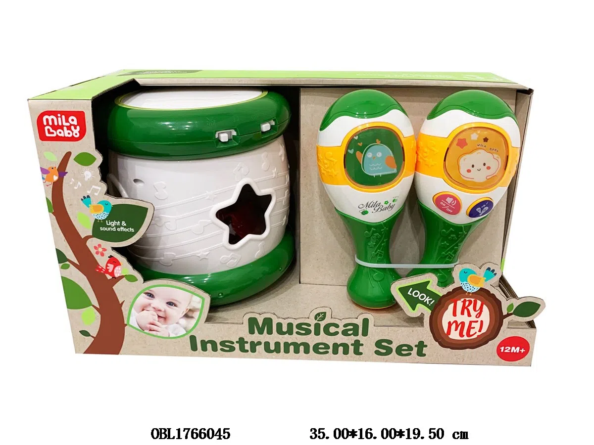 Baby hand drum set with lighting, music, 3 * AAA, not including electricity, sand hammer, 2 * AAA, not including electricity