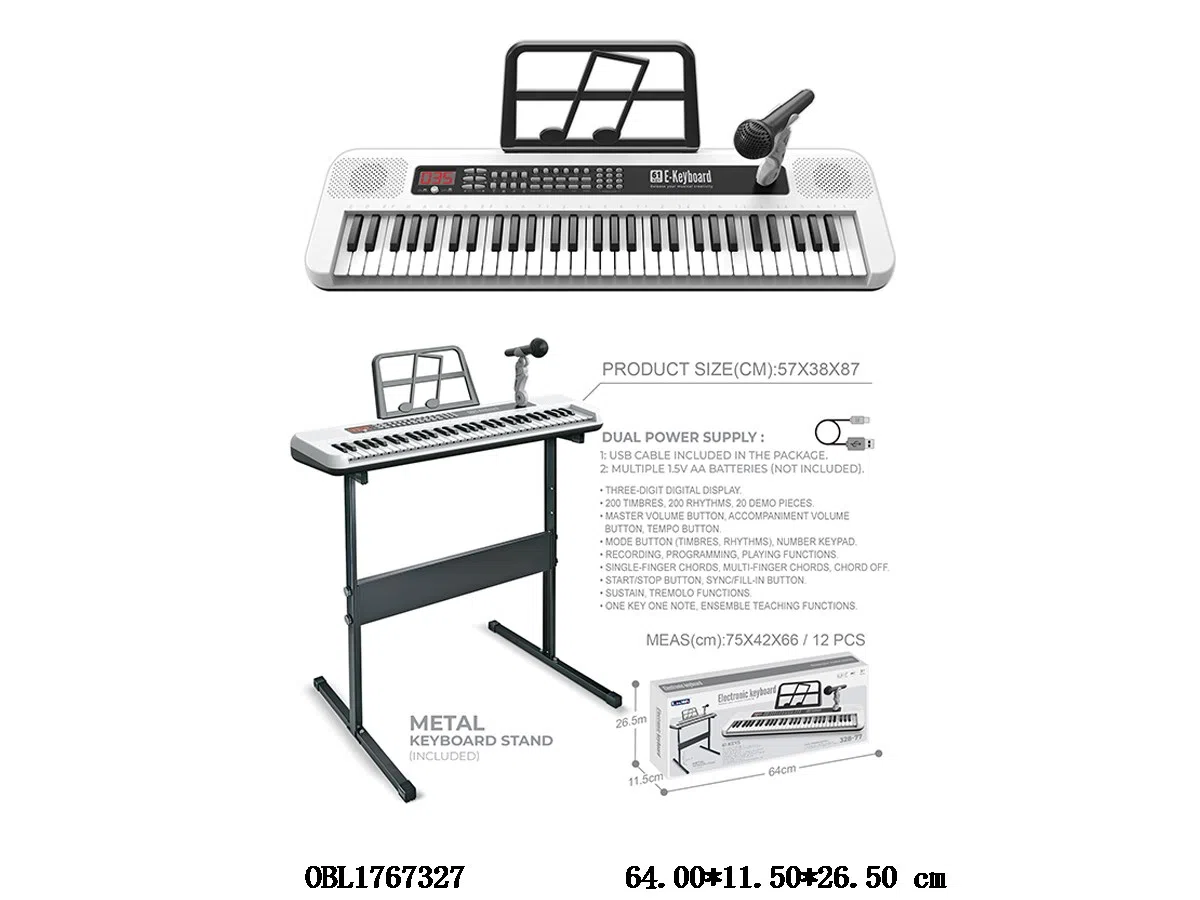 Home > Electronic Organ > 61 key electronic keyboard with USB cable microphone music stand manual