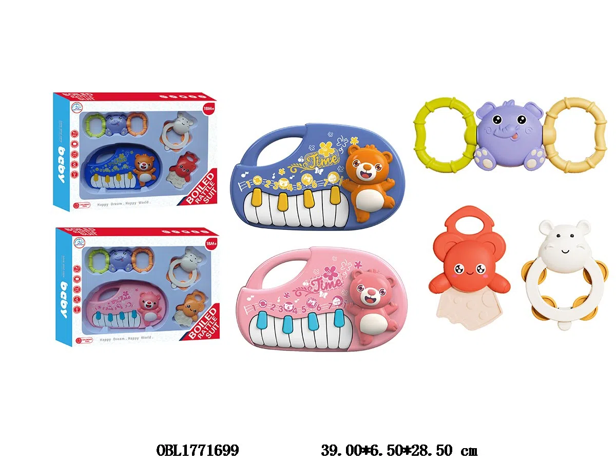 Cartoon teddy bear electronic keyboard with 3 rattles, 3 * AA, no electricity included, 2 colors mixed