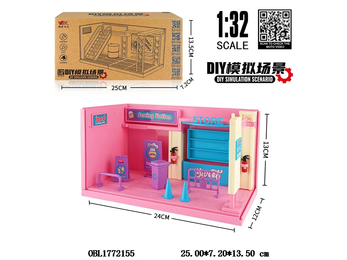 1:32 Zinc Alloy Ice Cream Shop Scene Set with Lighting 3 * AG13, Electric Package