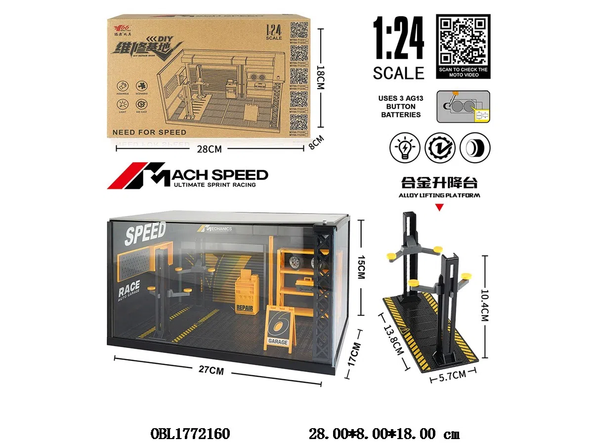 Home > Die-Cast Set > 1:24 Zinc Alloy Scene Set with Lighting 3 * AG13 Package with Acrylic