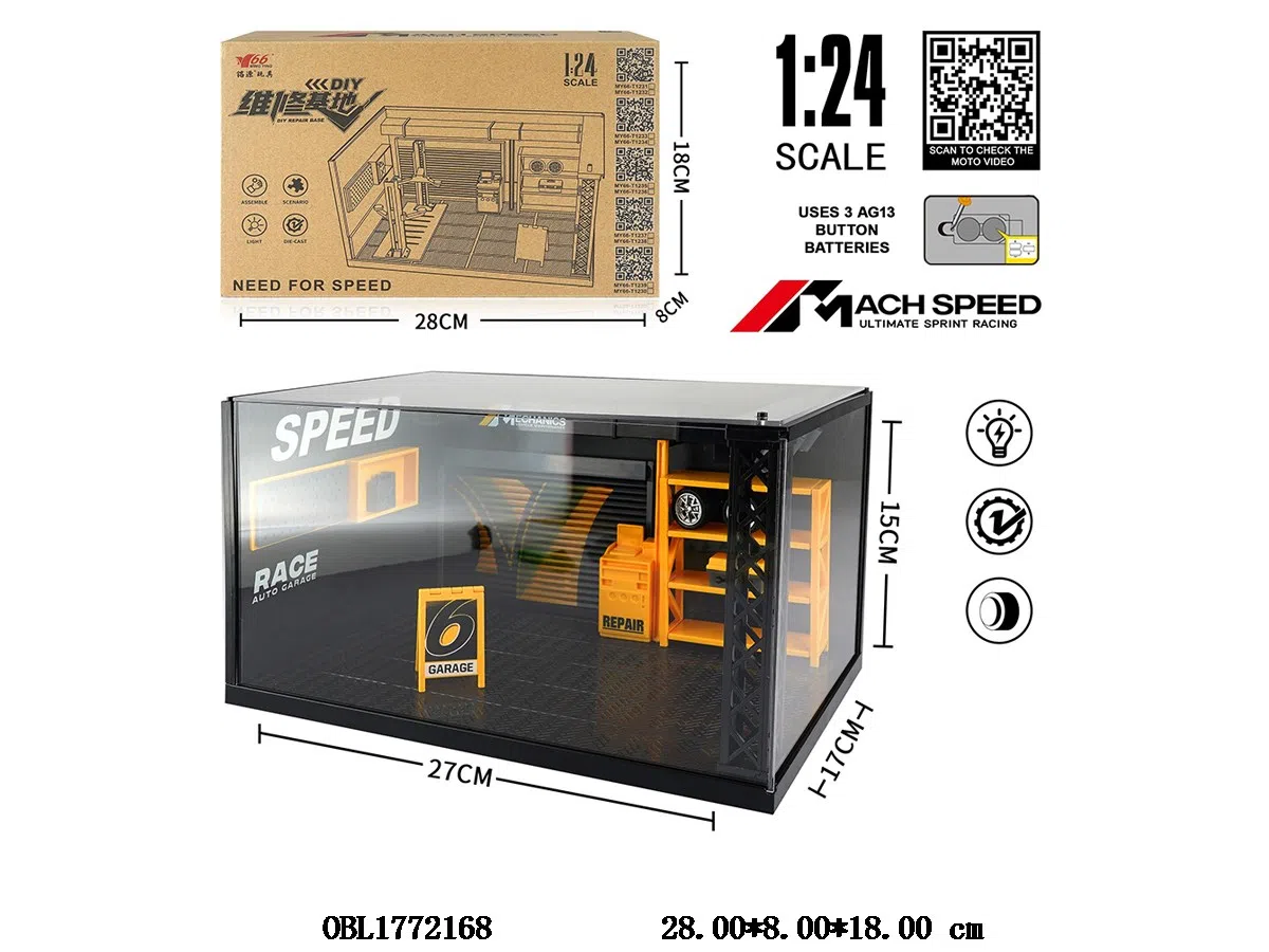 Home > Die-Cast Set > 1:24 Zinc Alloy Scene Set with Lighting 3 * AG13 Package with Acrylic