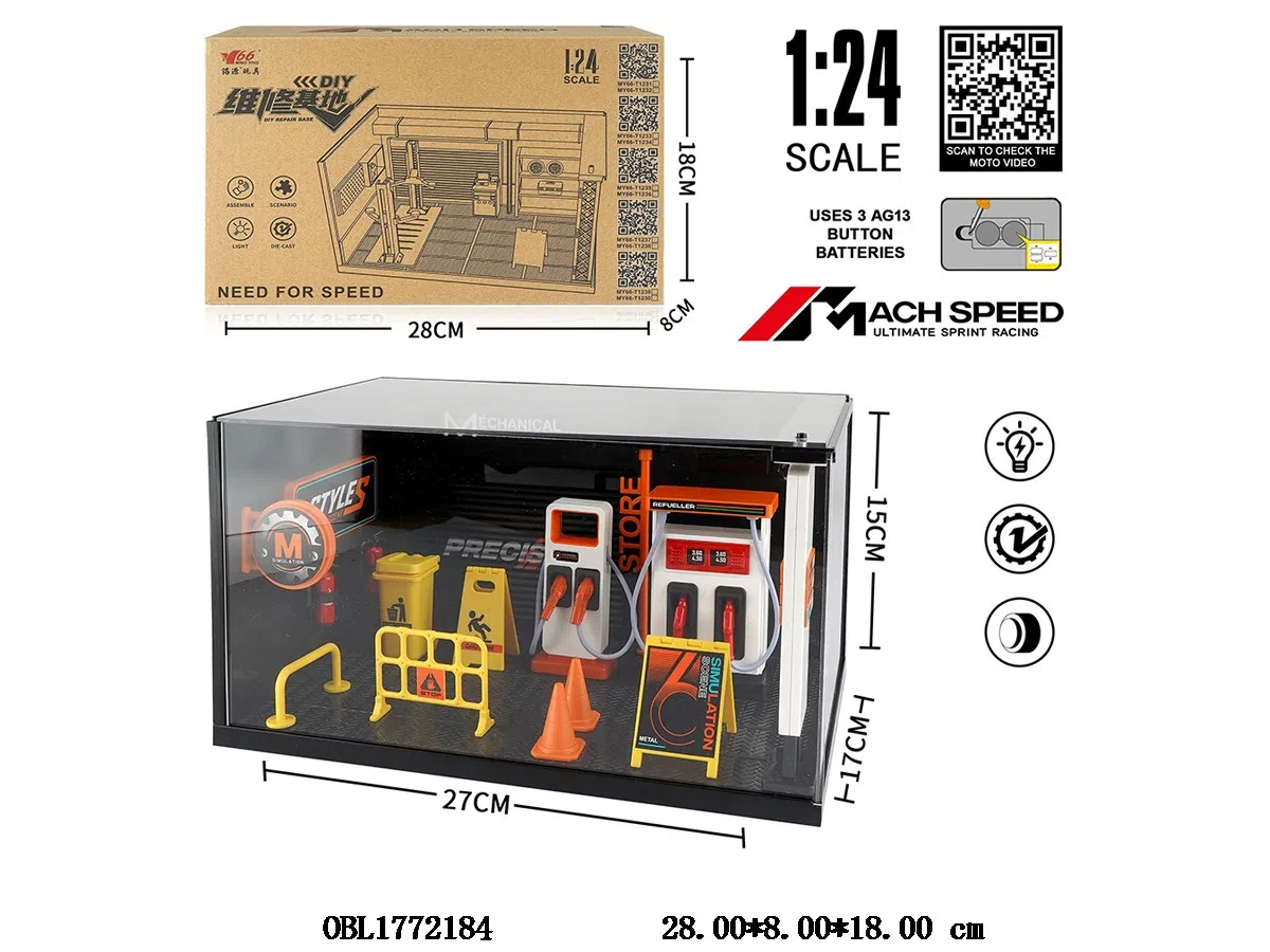 Home > Die-Cast Set > 1:24 Gas Dispenser/Charging Pile Zinc Alloy Scene Set with Lighting 3 * AG13 Package with Acrylic