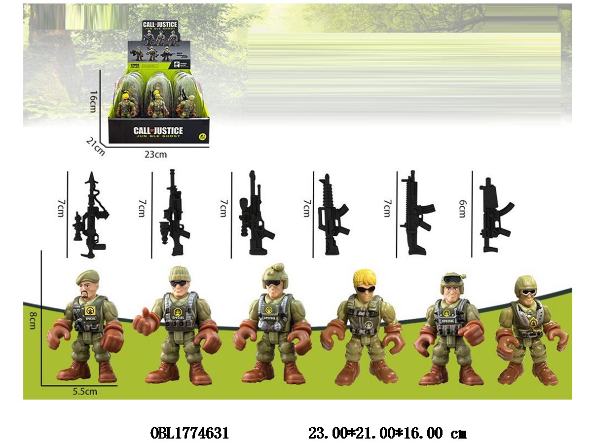Home > Armament/Police Set > 3-inch assembled military suit with 6 mixed designs and 12 small boxes in one display box