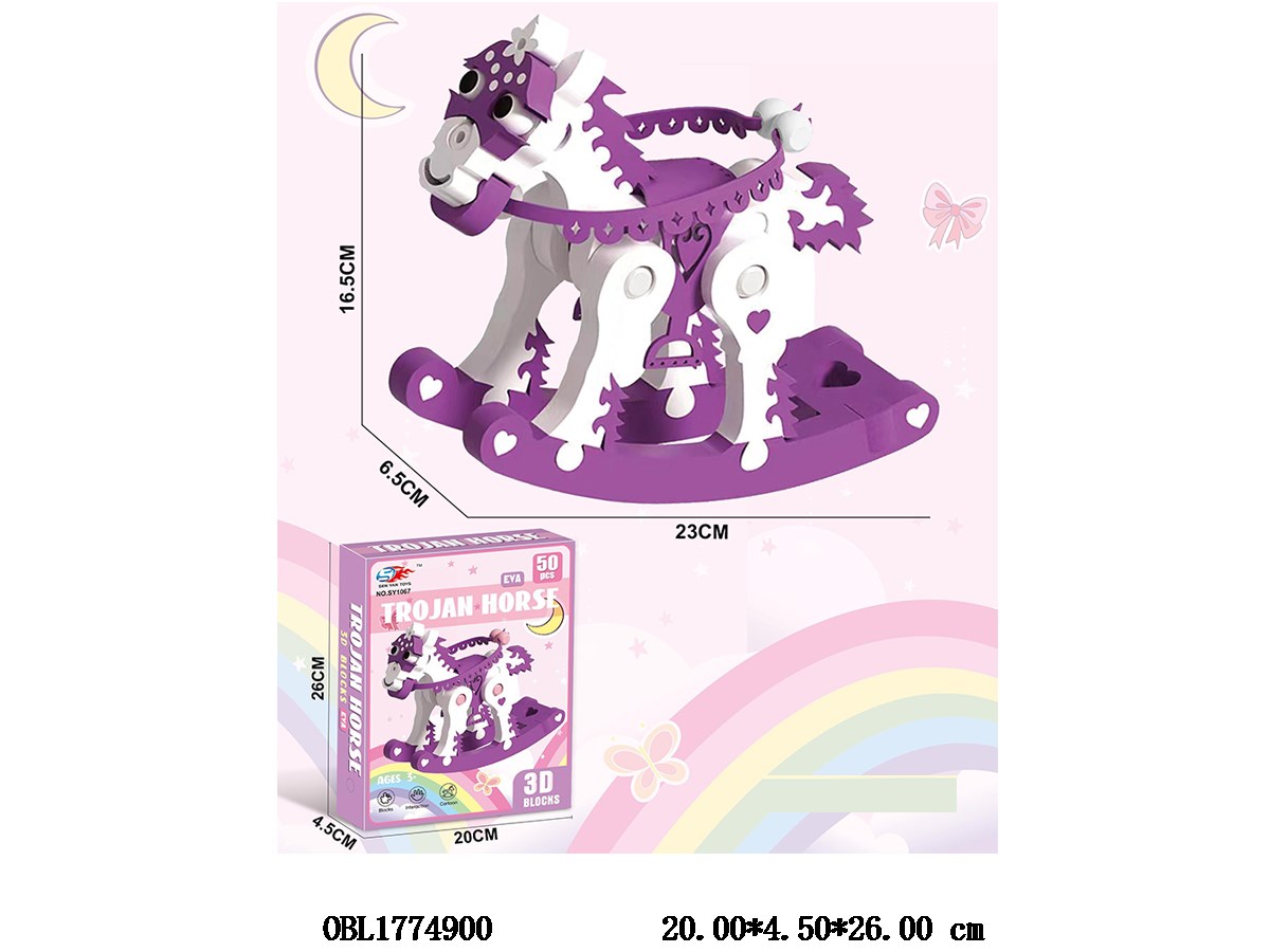 Puzzle 3D 3D EVA assembled building blocks rocking horse 51PCS