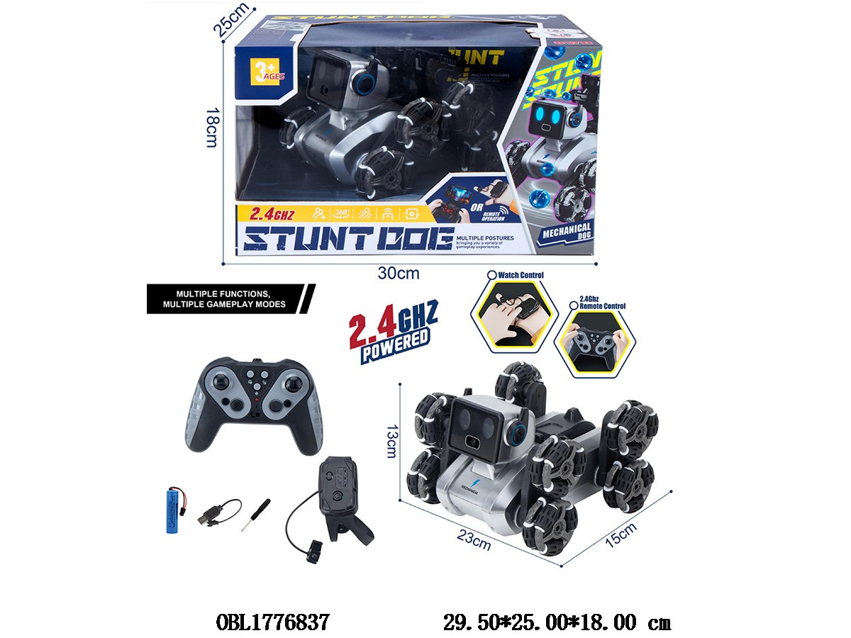 Home > R/C Animals > Dual remote control stunt mechanical dog with lights and sound, equipped with USB cable main body 3.7V battery pack remote control, 3 * AA non battery pack remote control, watch remote control, non battery pack 2.4G frequency