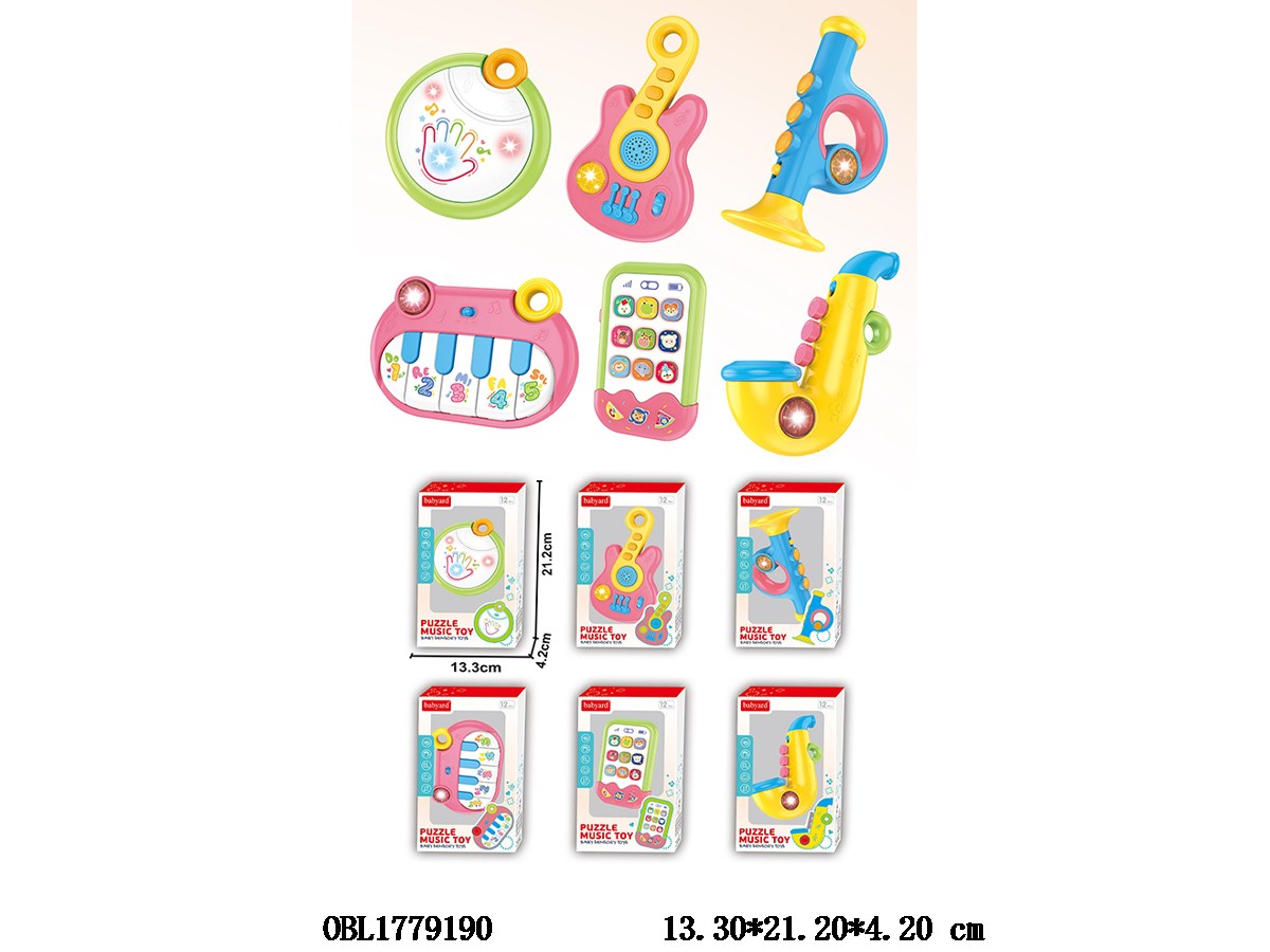Home > Other Musical Toys > Instrument with lighting and sound, 6 mixed models, mobile phone/piano/hand drum/guitar, 3 * AAA each, no electricity included, small 3 * AG13 with electricity included, saxophone 2 * AA without electricity included
