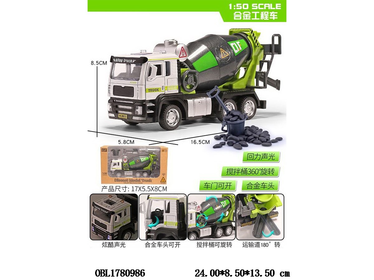Home > Die-Cast Car > Alloy regenerative mixer truck with lighting and sound, 3 * AG13, electric package included