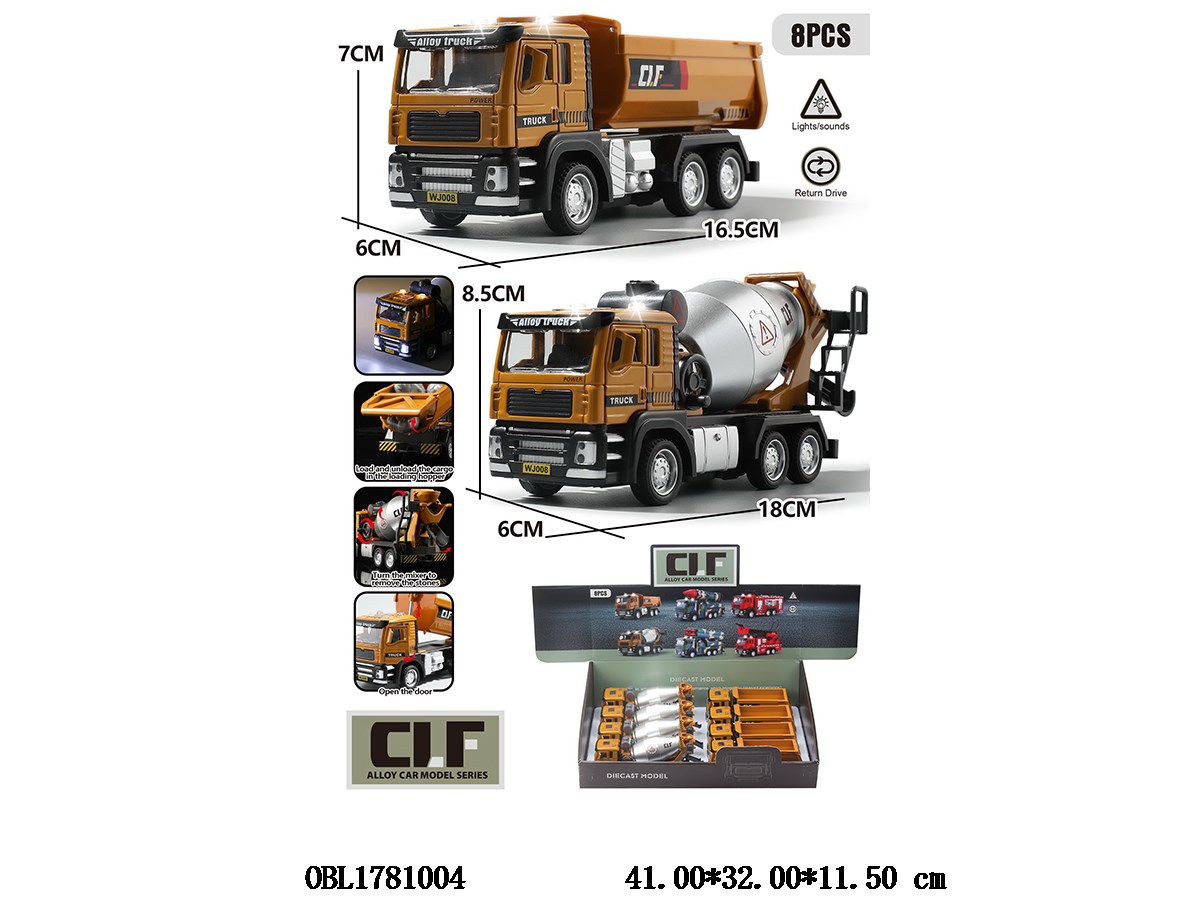 Alloy regenerative car with light and sound, 3 * AG13, including electricity, 2 mixed models, 8 pieces, 1 display box