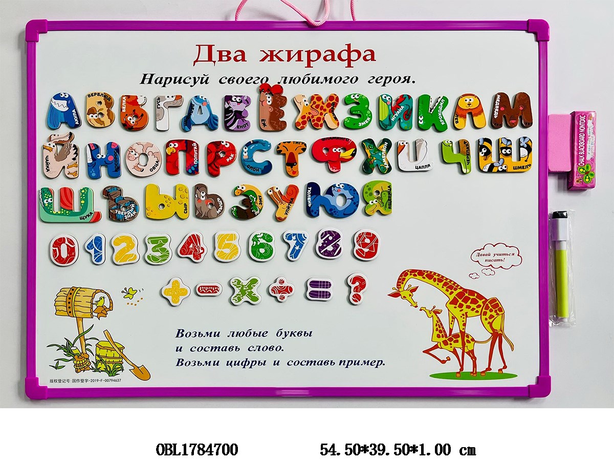 Russian double-sided whiteboard with 49 EVA Russian letters/numbers