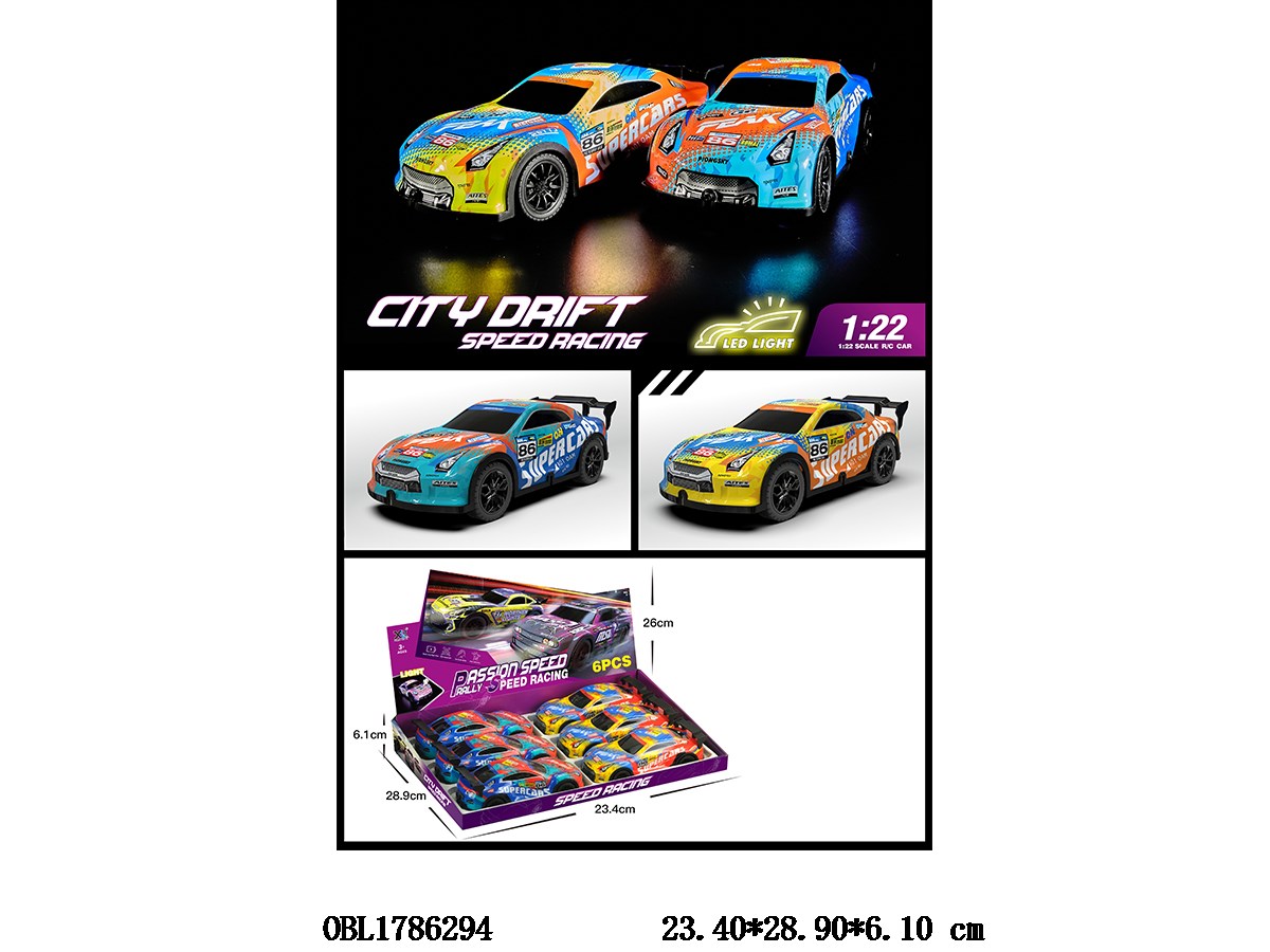 Home > F/P Car > Inertial racing car with lighting, music, 4 * AG13, electric package, 2 colors mixed, 6 pieces per display box