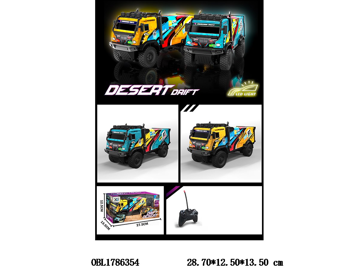 Home > R/C Car > Four way remote control heavy-duty truck with lights, body 3 * AA, no electricity included, remote control 2 * AA, no electricity included, 27 frequency, 2 color mixed design