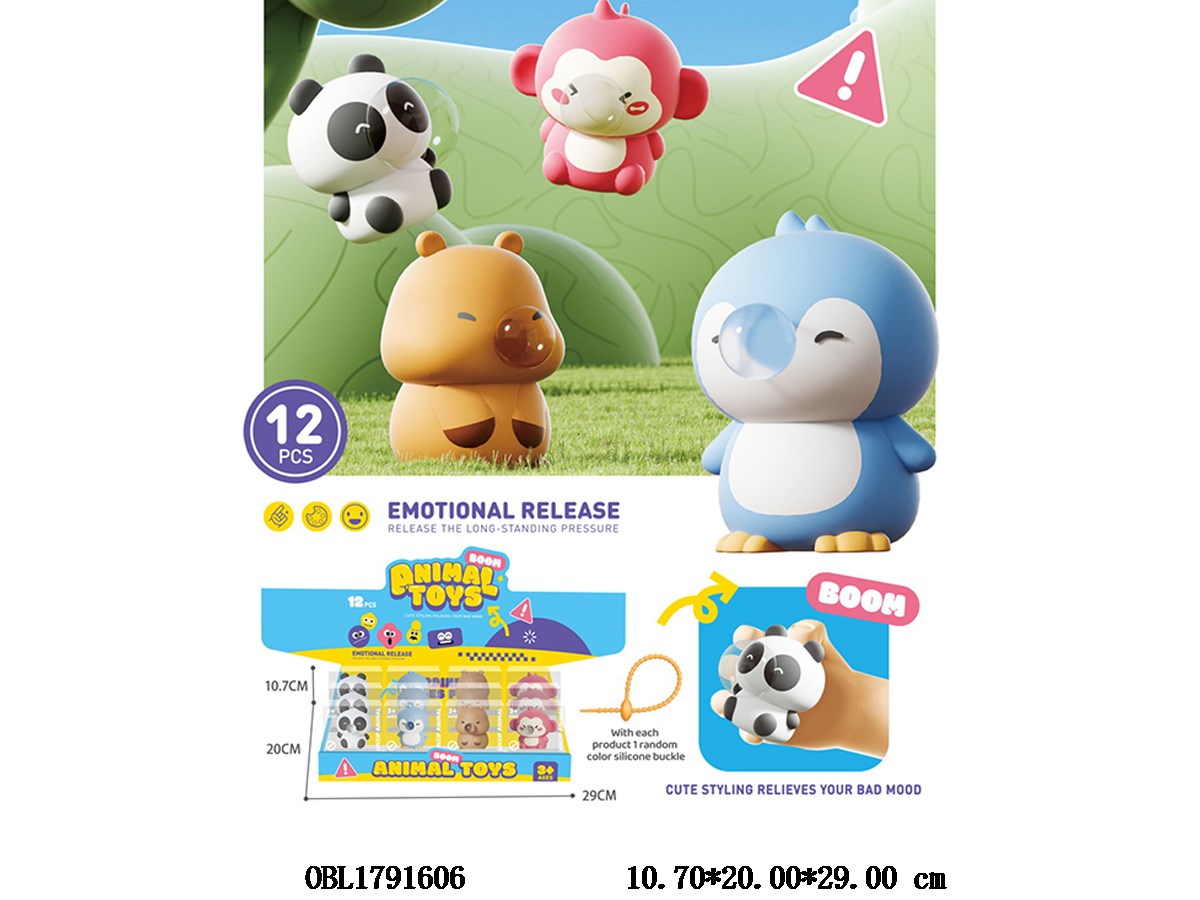 Decompression Slow Rebound Bubble Blowing Animal 4 Mixed Pack 12 Boxes 1 Display Box