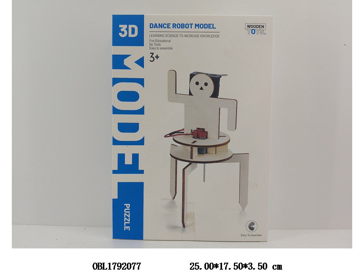 Home > Wooden Toys > 3D wooden electric dancing robot 2 * AA, no electricity included