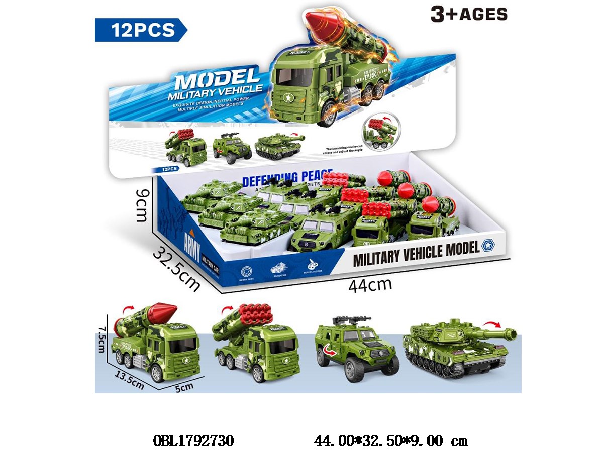 Inertial military armored vehicle, 4 mixed models, 12 pieces, 1 display box