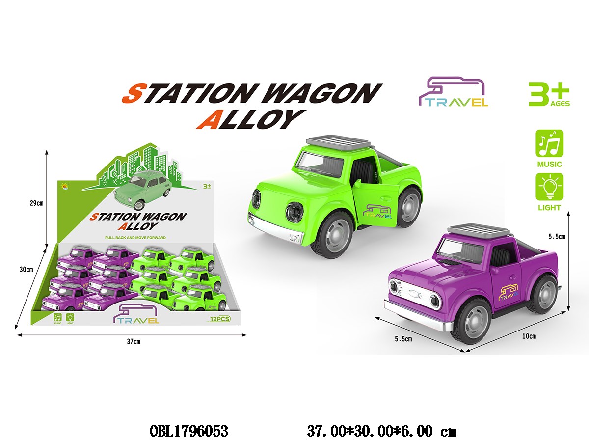 Alloy rebound pickup truck with light and sound, 3 * AG3, including electricity, 2 mixed models, 12 pieces per display box