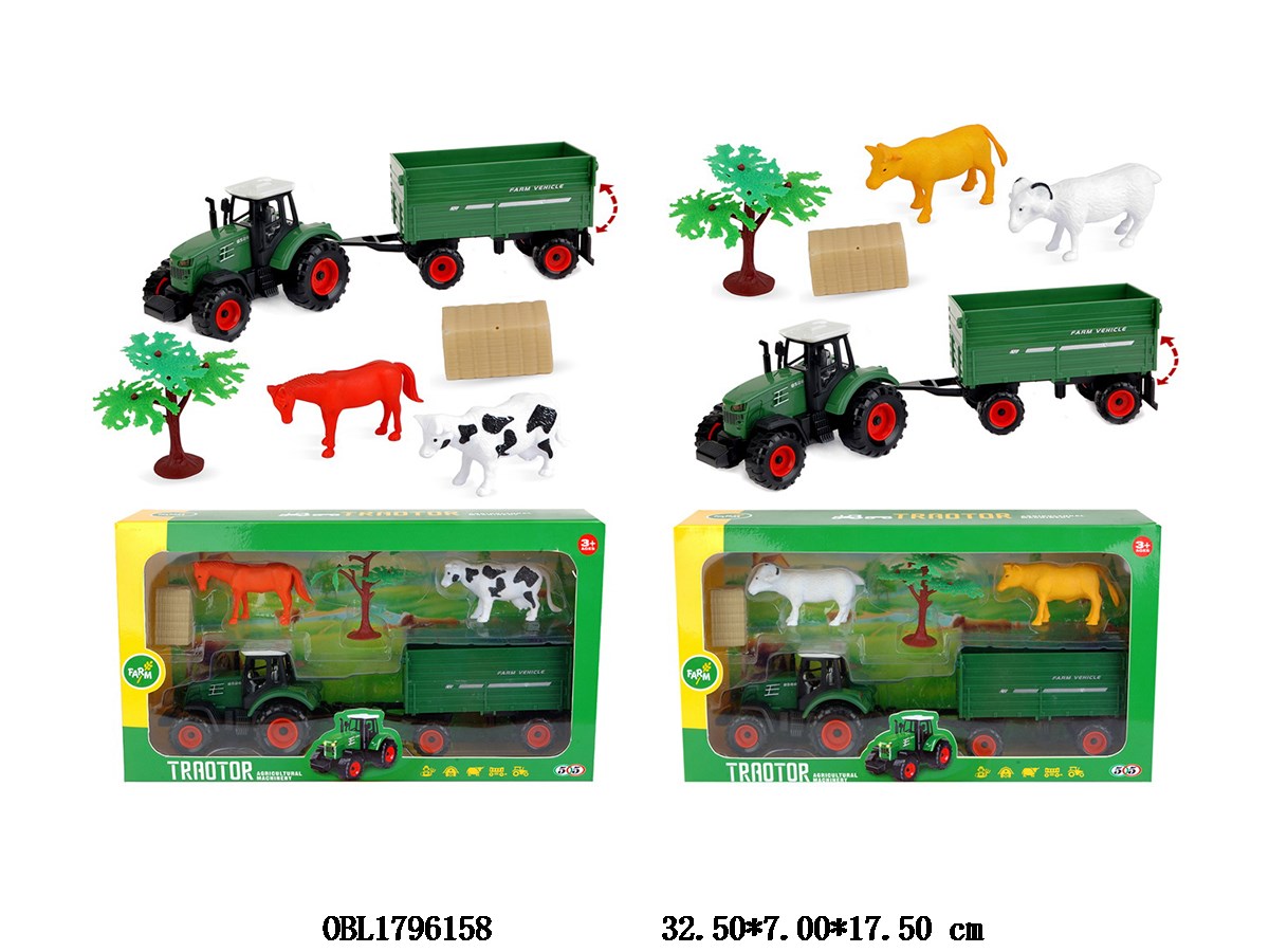 Sliding Farmer Trailer Set with 2 Hard Material Animals, 2 Mixed Models