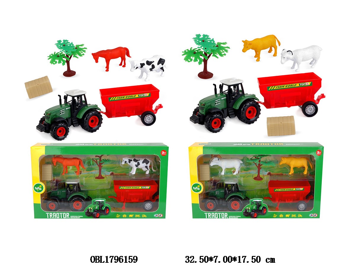 Sliding Farmer Trailer Set with 2 Hard Material Animals, 2 Mixed Models