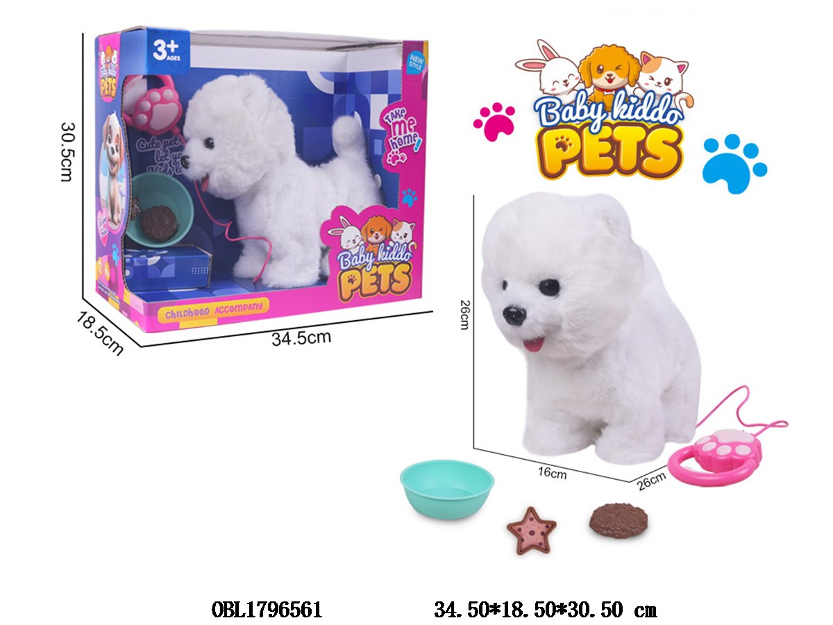 Wire controlled plush dog set with music, walking, tongue sticking recording, 3 * AA, no power included