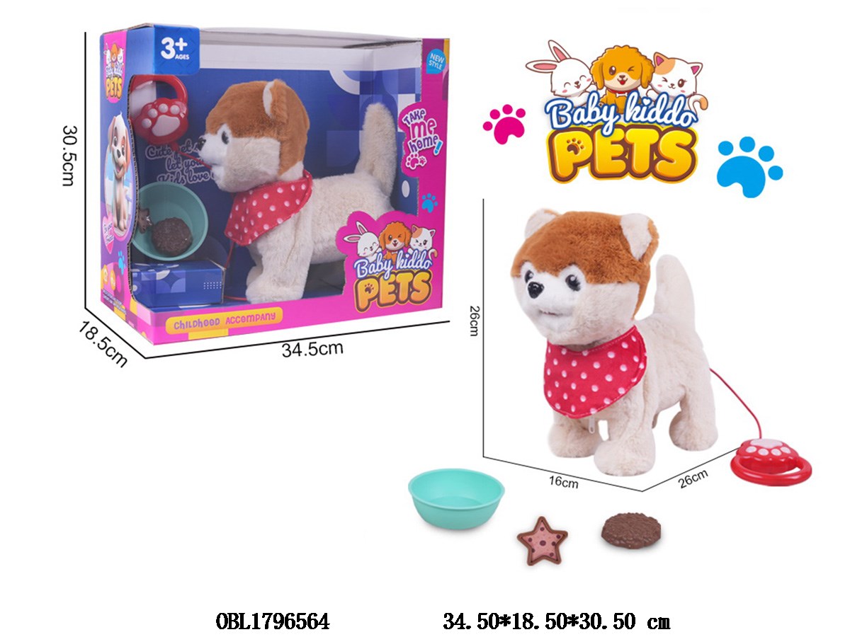 Wire controlled plush dog set with music, walking, tongue sticking recording, 3 * AA, no power included