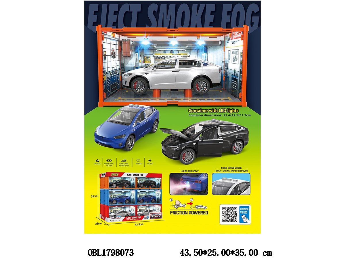 Inertial vehicle with light and sound, spray, openable, 2 * AAA, no electricity, 3-color mixed package, 12 small boxes, one display box