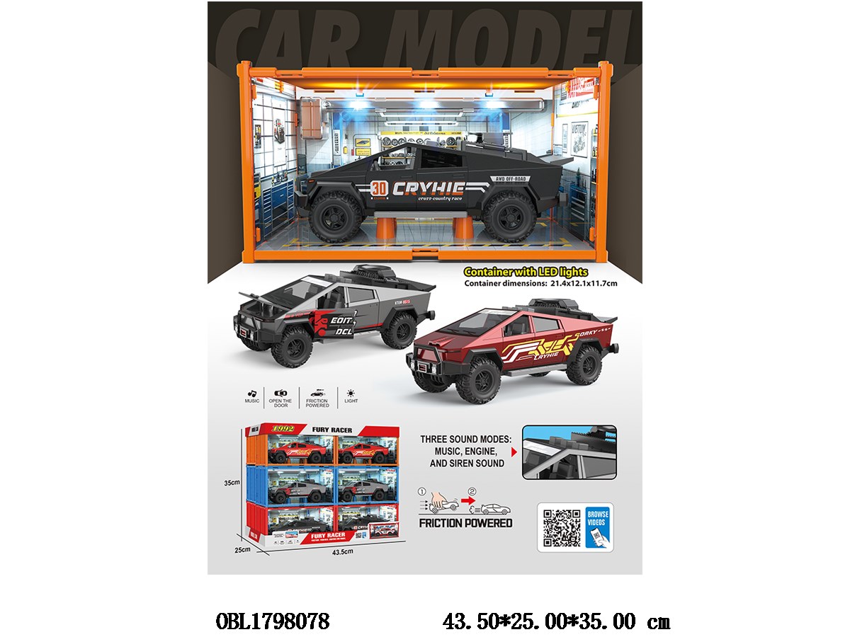 Home > F/P Car > Inertial car with lights and sound, can open door 2 * AAA, no electricity included, 3 colors mixed, 12 small boxes, one display box