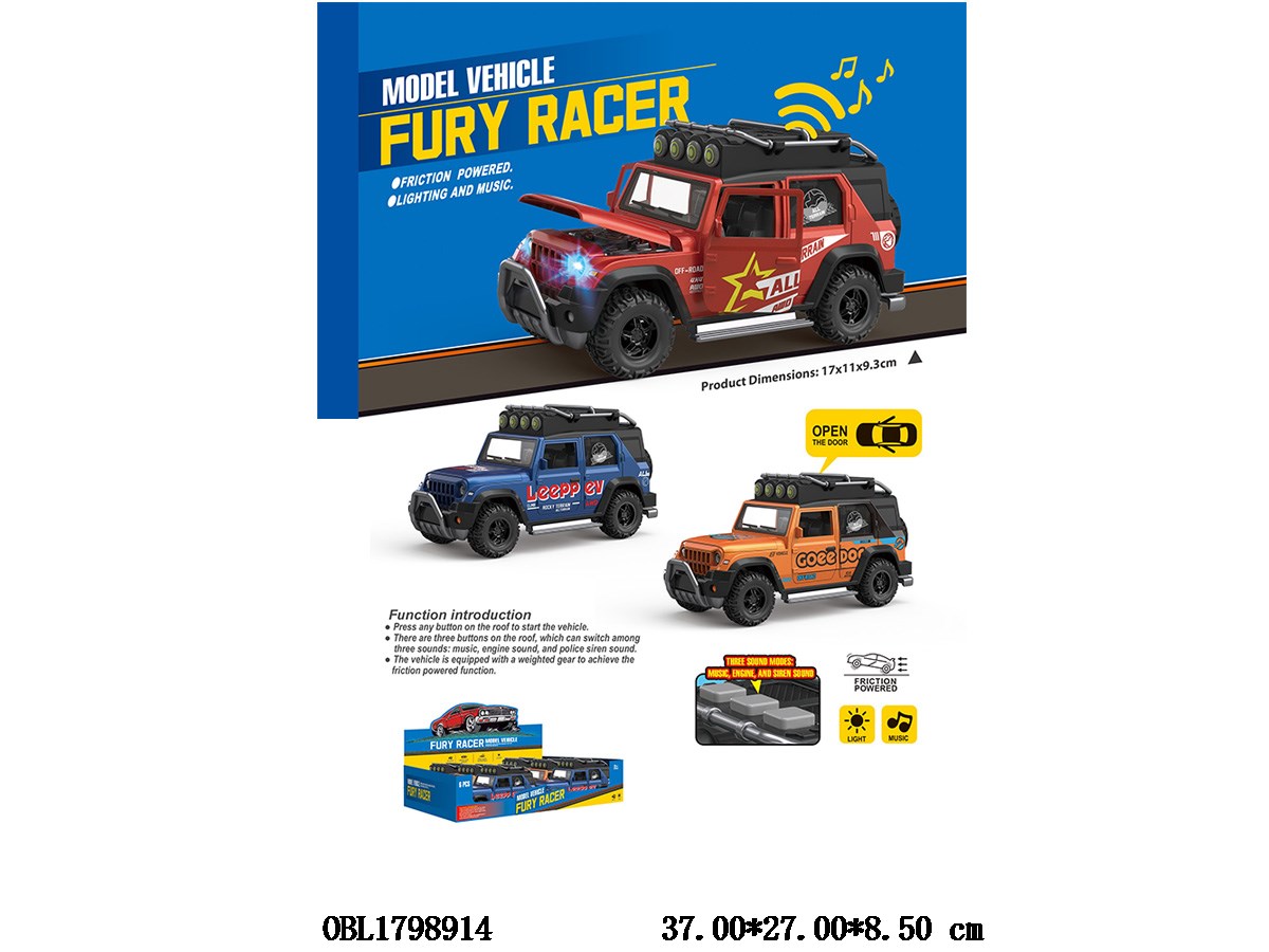 Home > F/P Car > Inertial off-road vehicle with lights and sound, capable of opening doors 2 * AAA, no electricity included, 3 colors mixed, 6 pieces per display box
